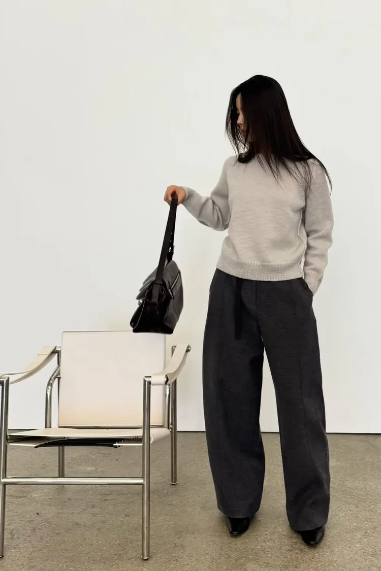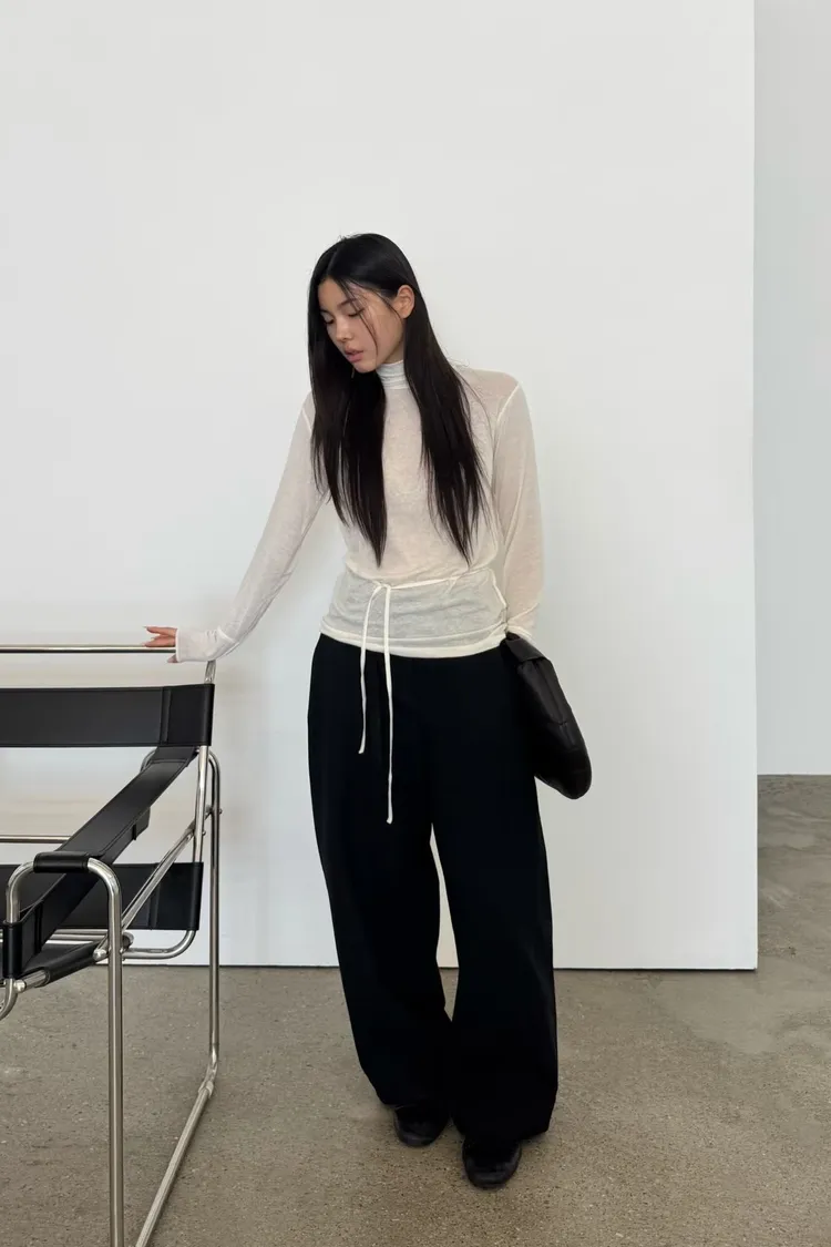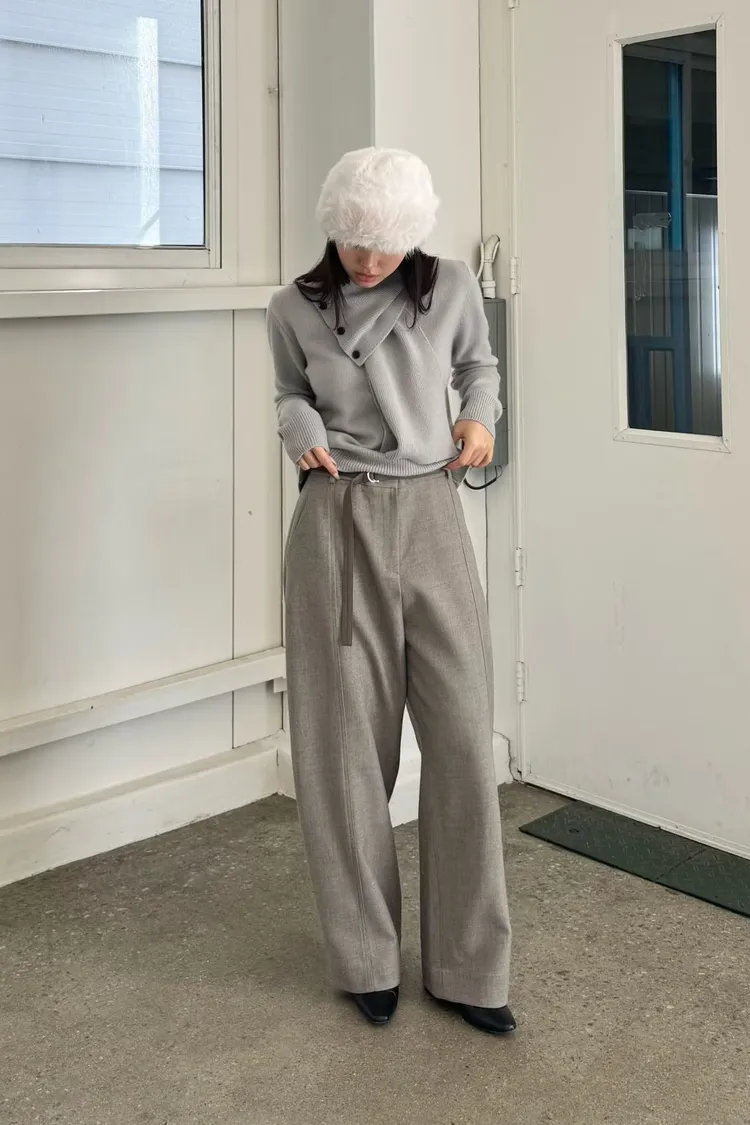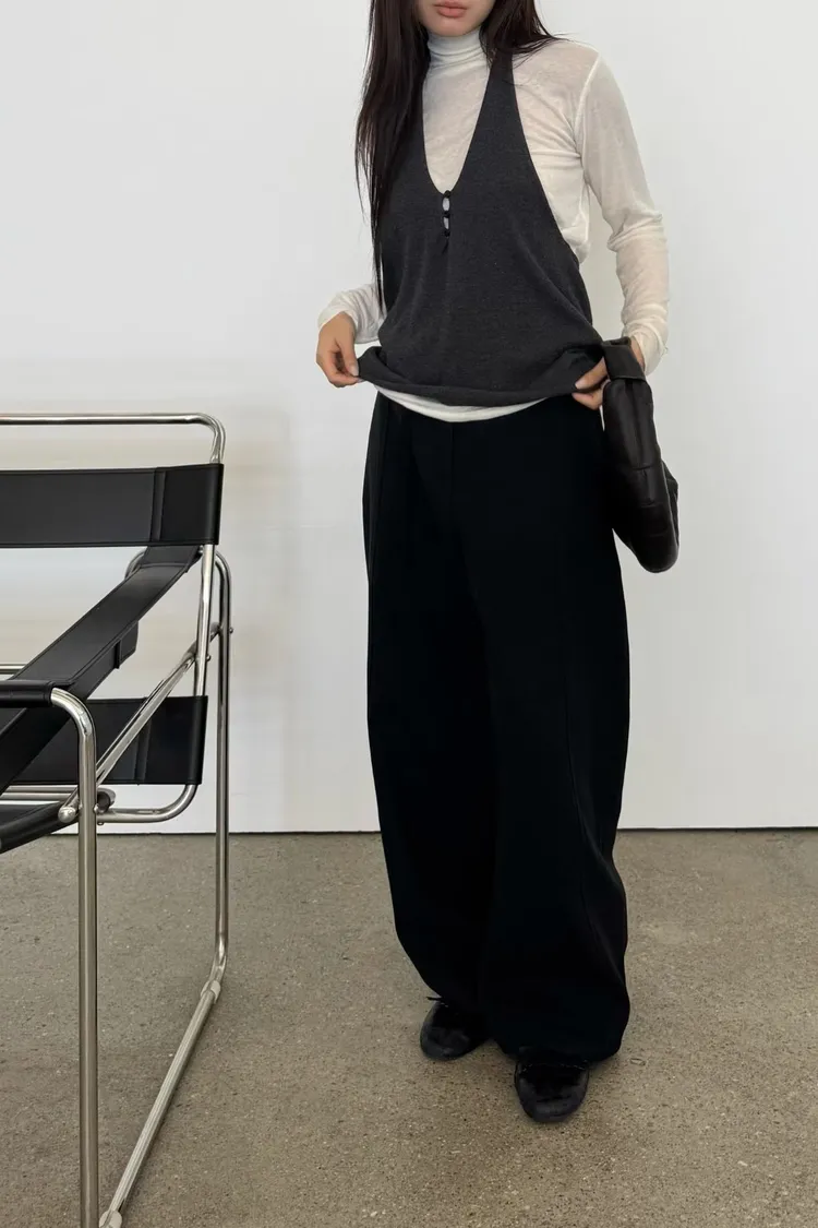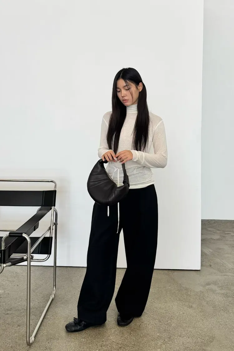 時髦質感彎刀褲