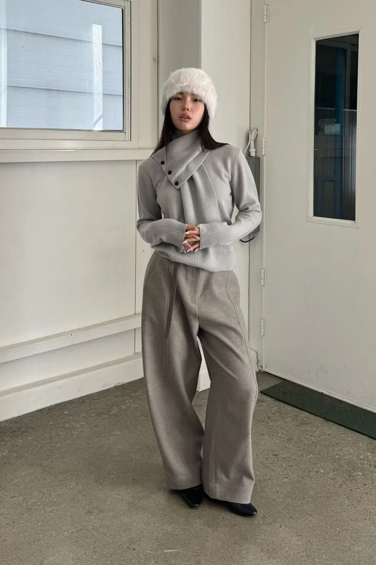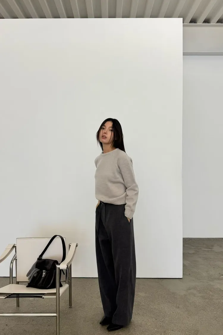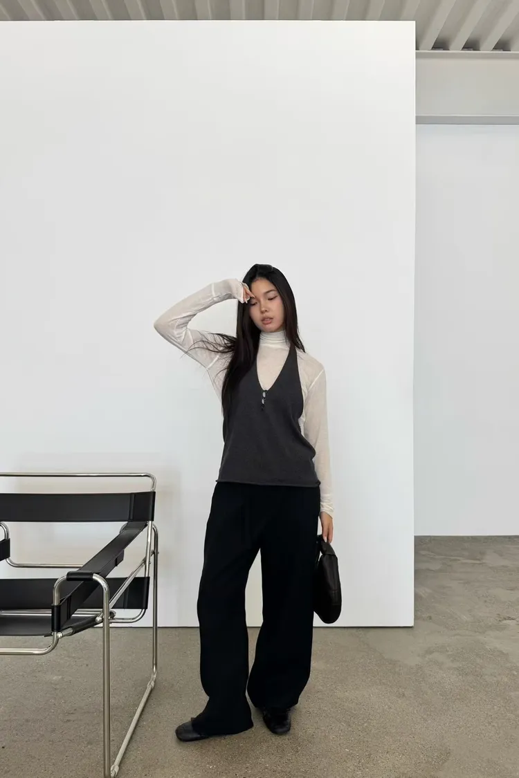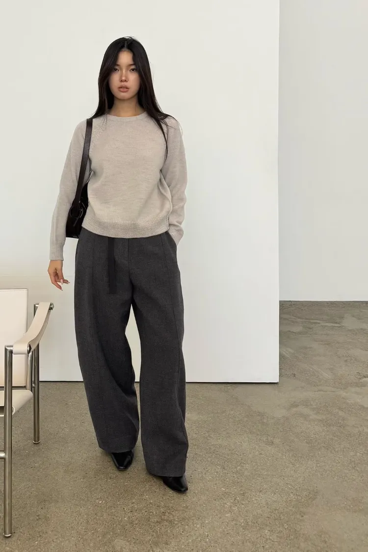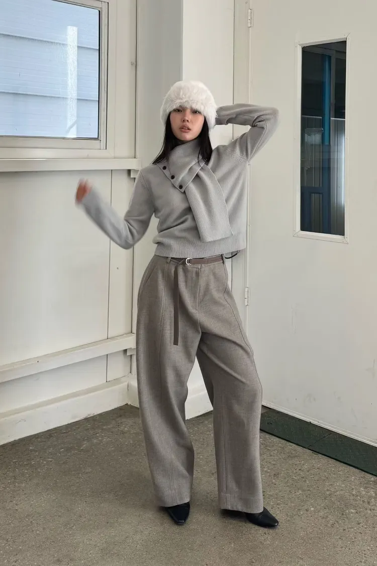 時髦質感彎刀褲
