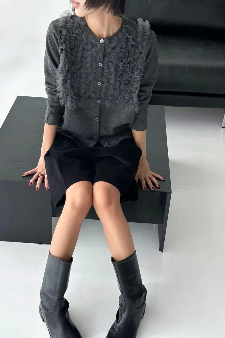 超美花邊設計針織開衫