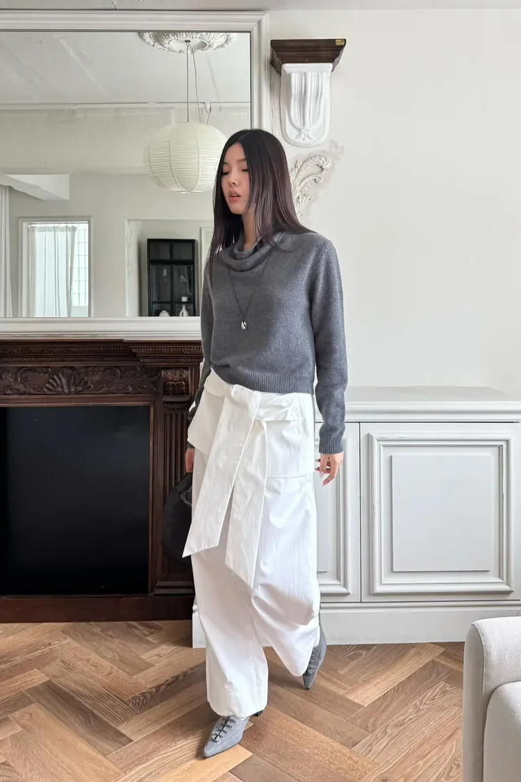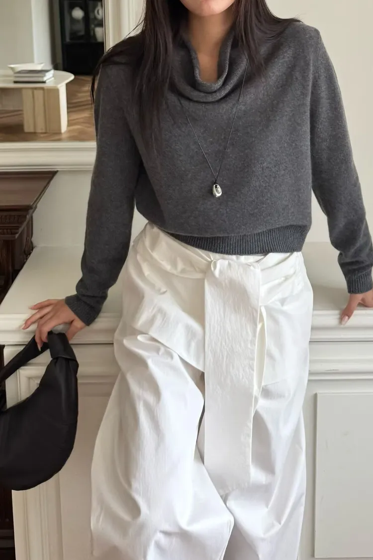 垂墜領設計羊毛衫