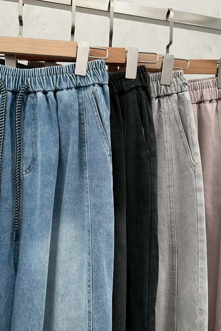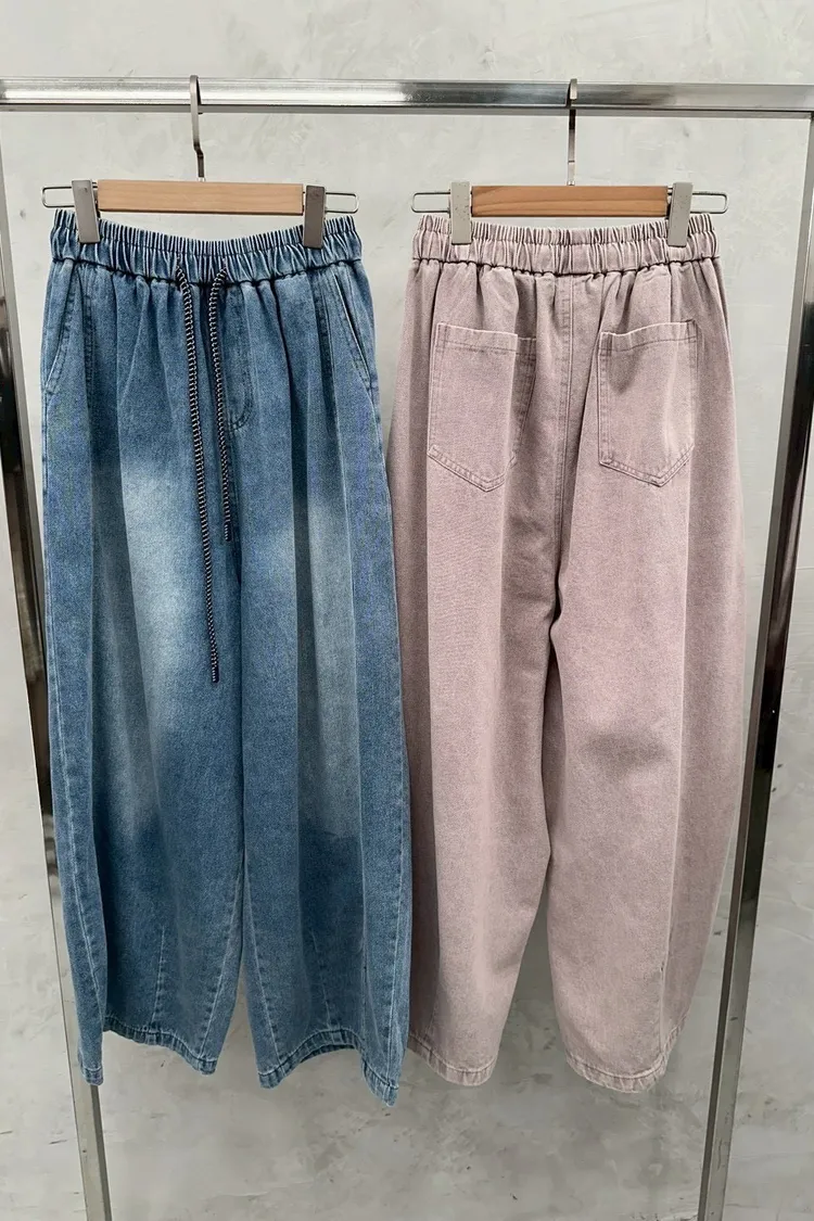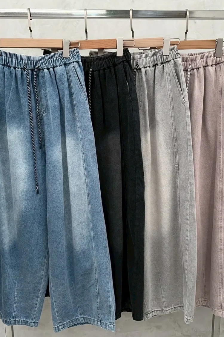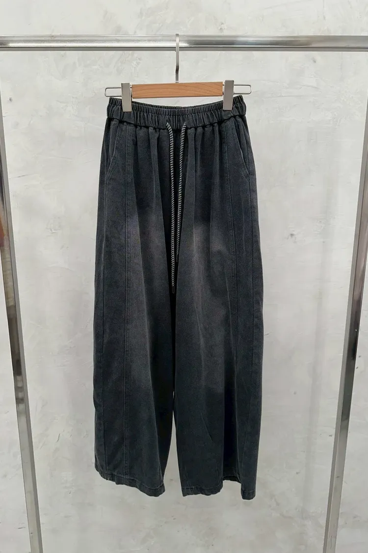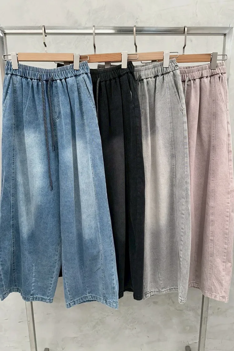 春夏水系單寧抽繩彎刀褲