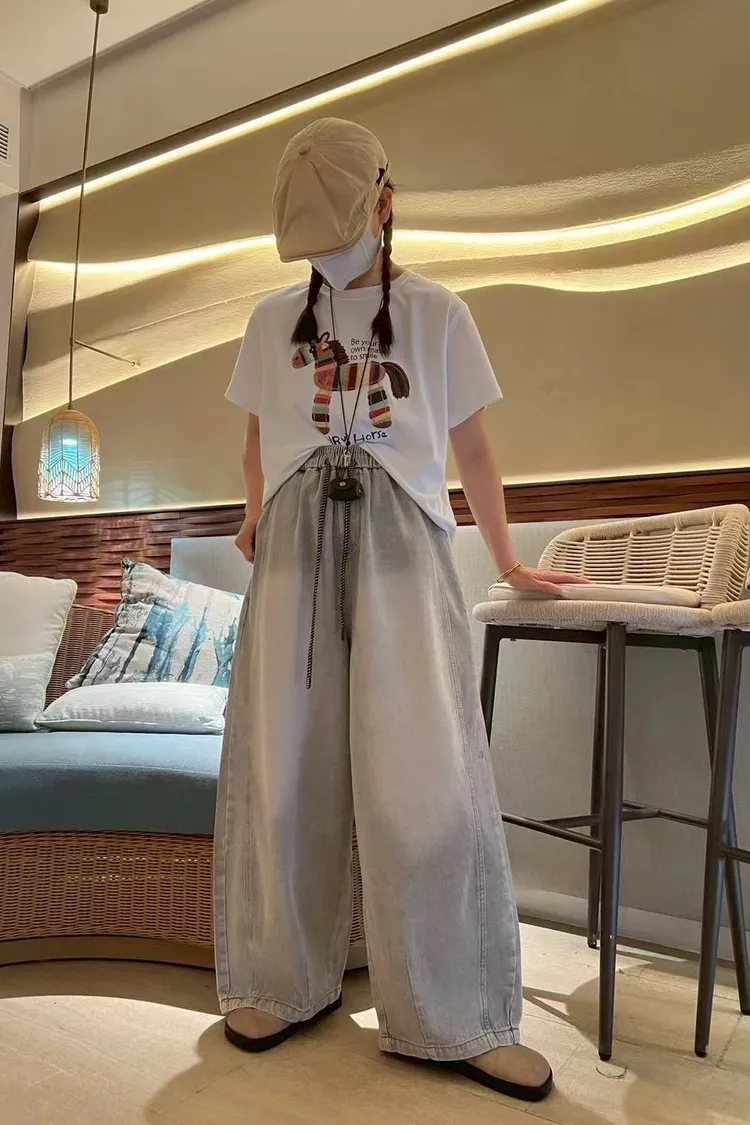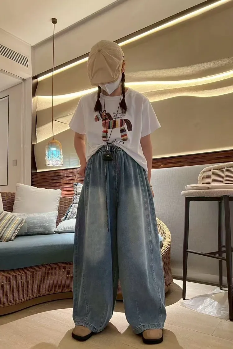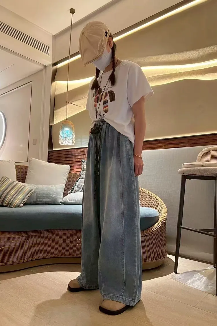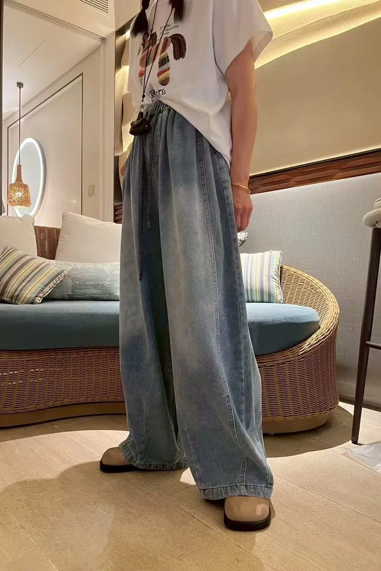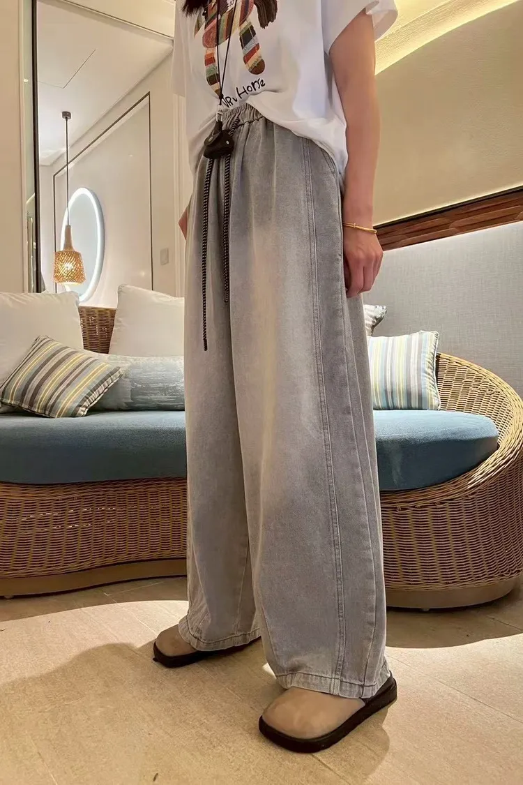 春夏水系單寧抽繩彎刀褲