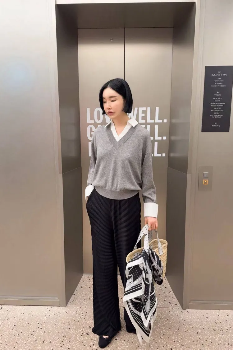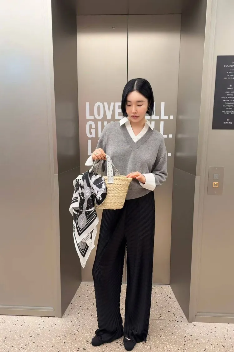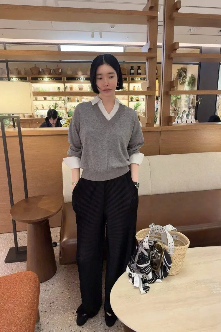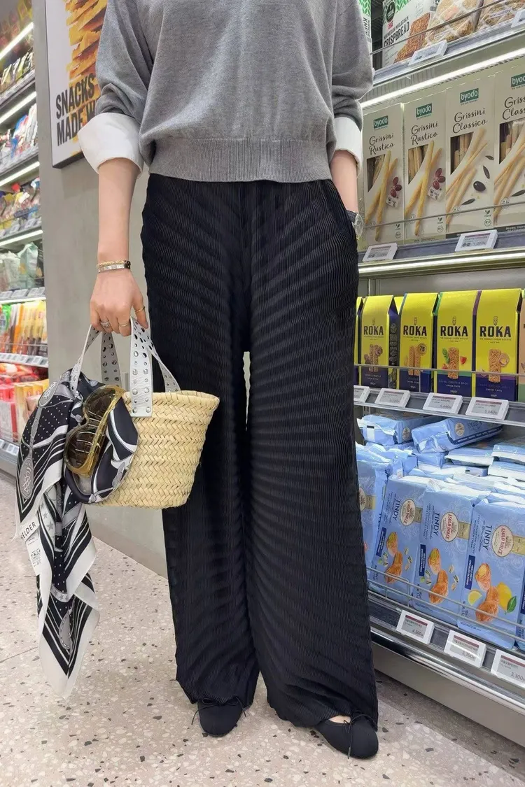 高質感設計家波浪紋鬆緊長褲