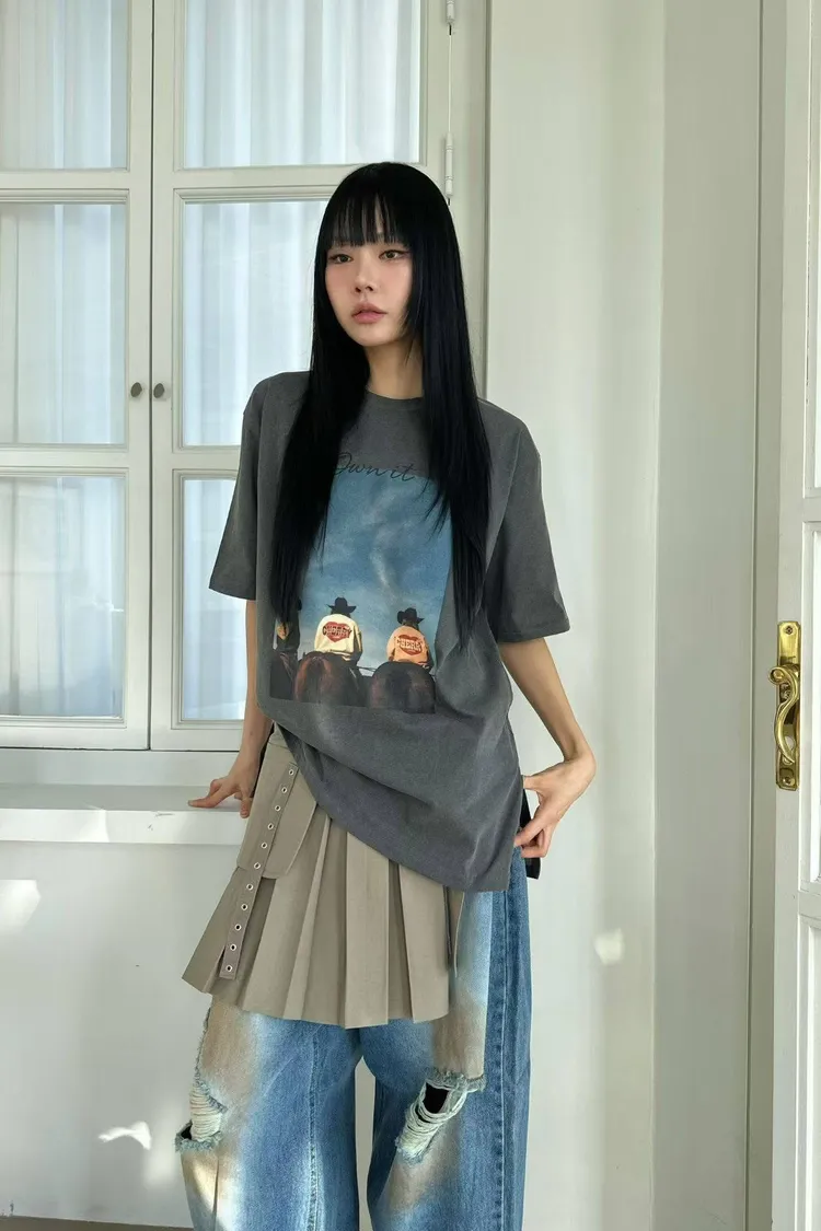 時髦牛仔圖案T