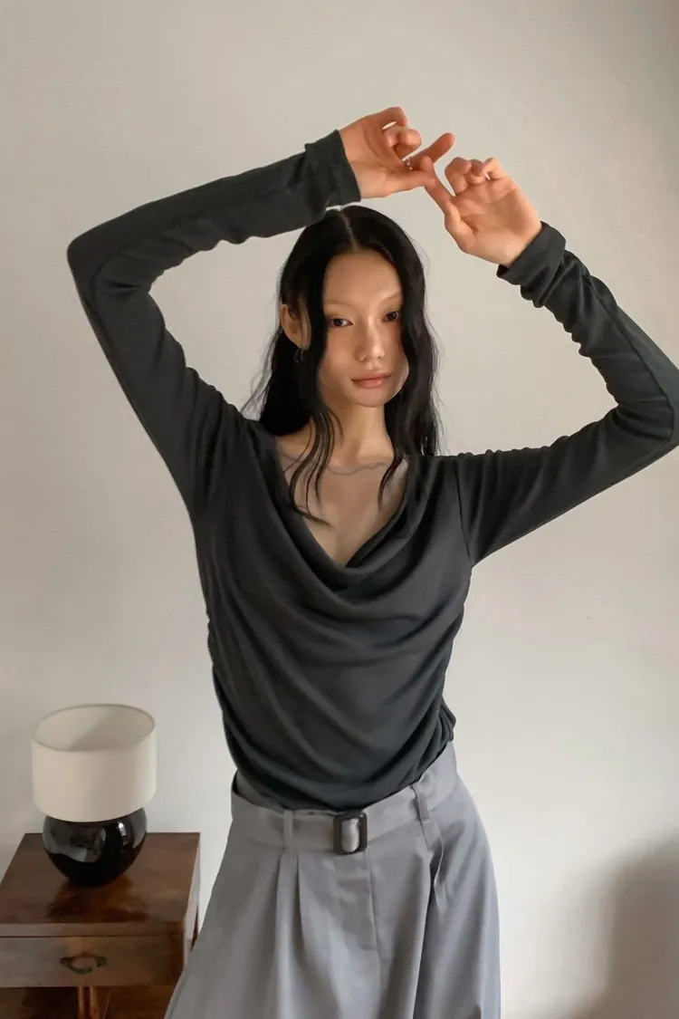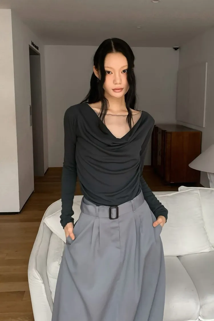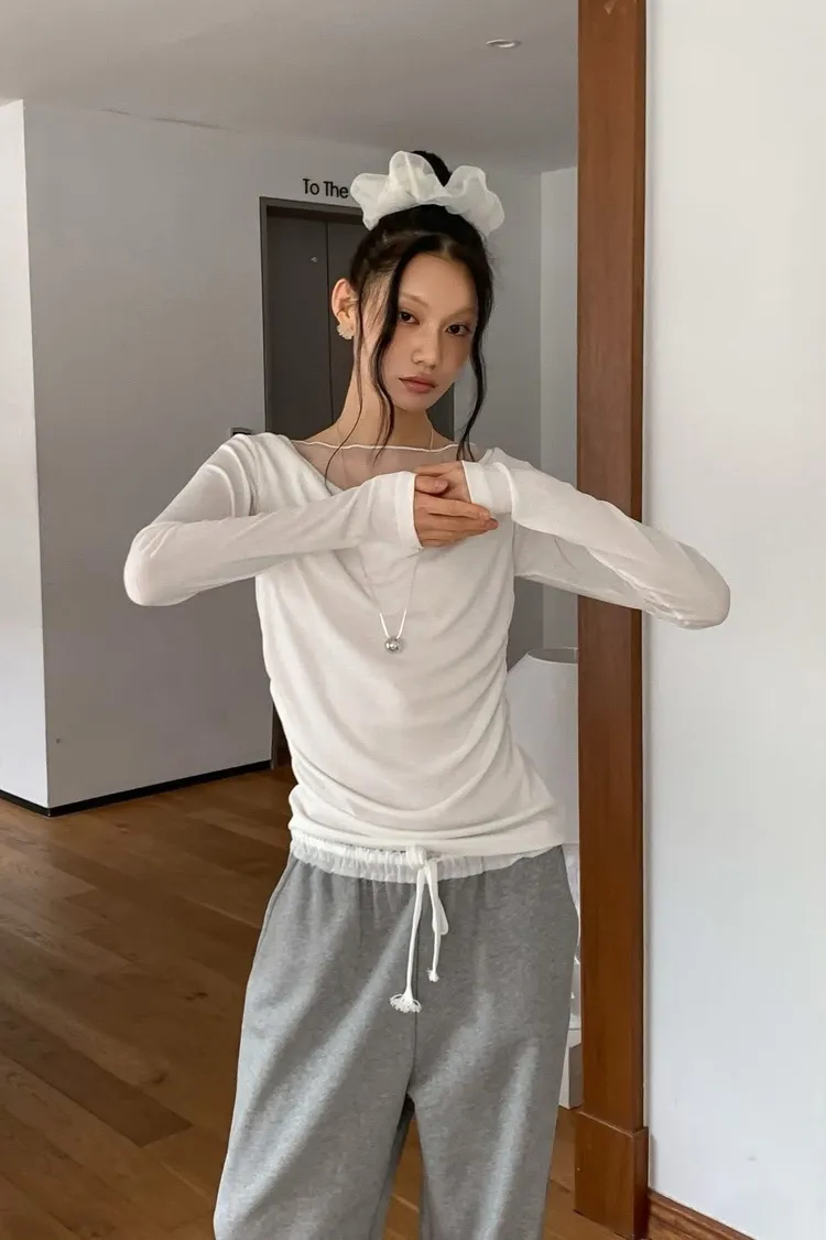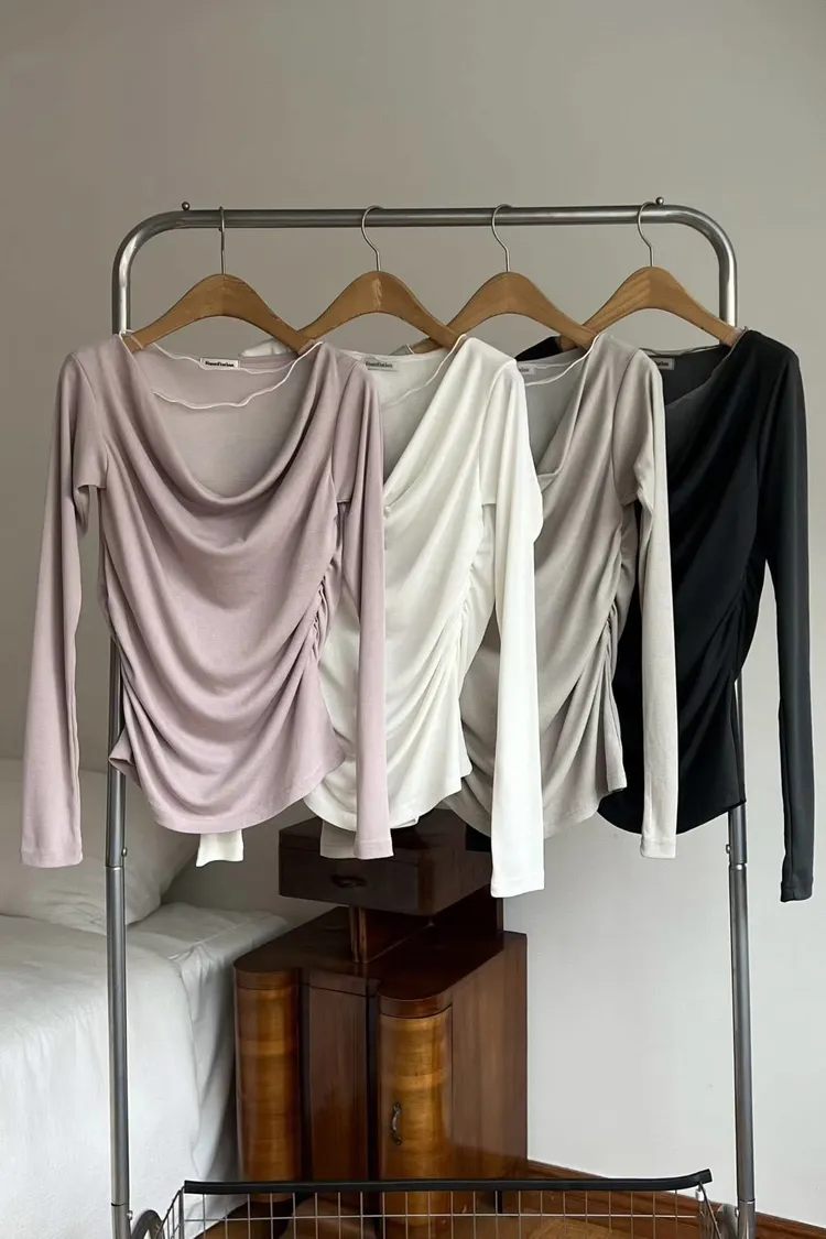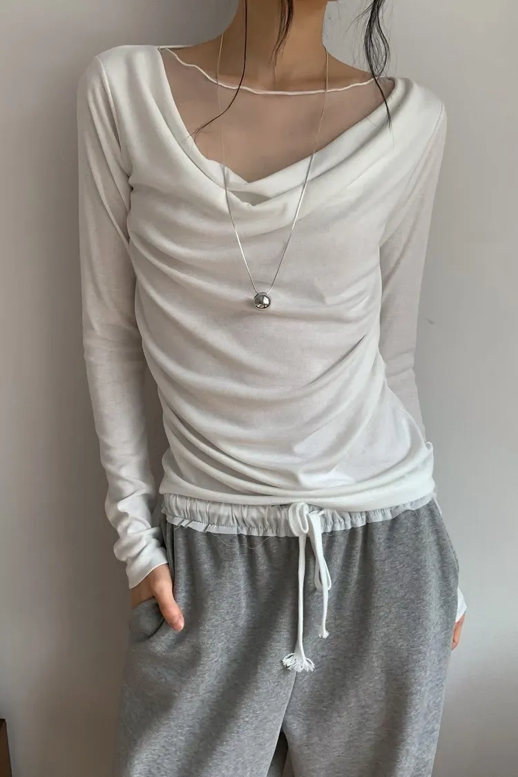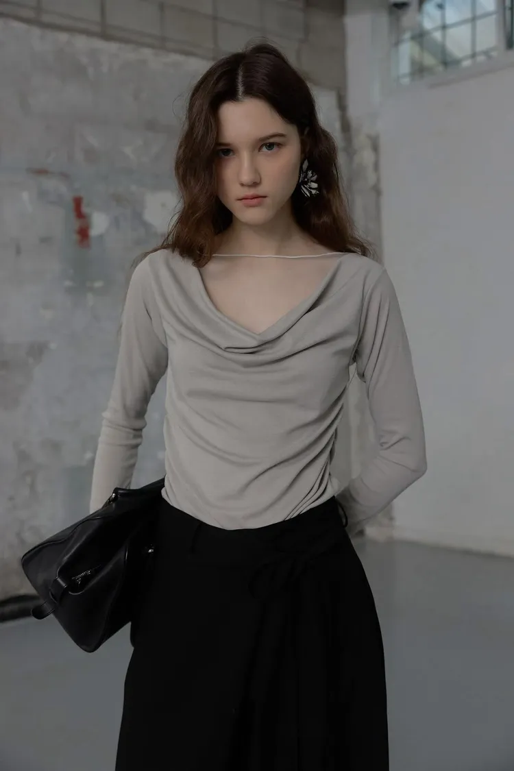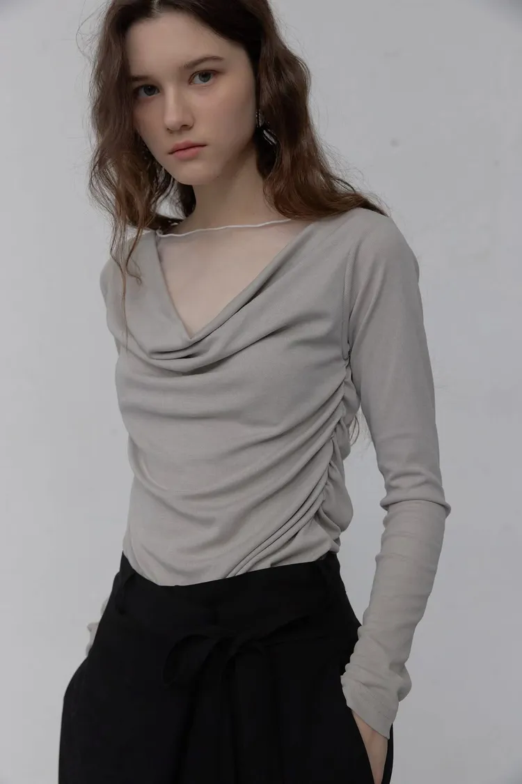 拼紗設計抓褶上衣