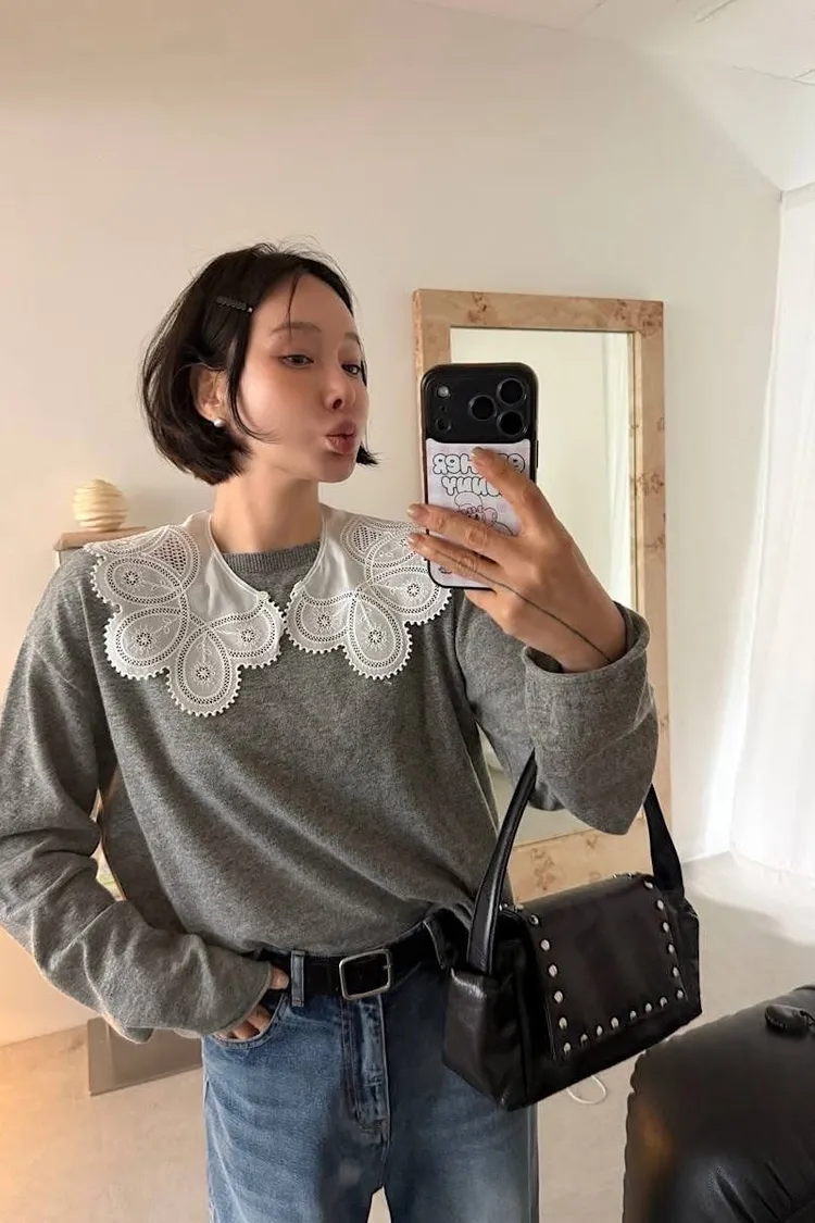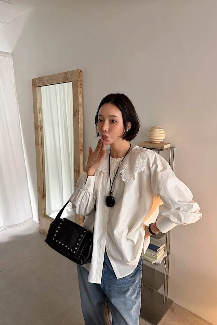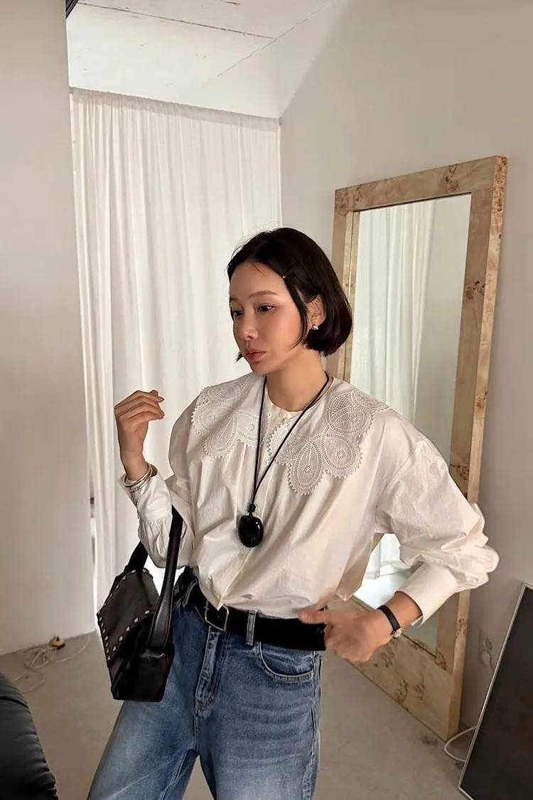 超美蕾絲領可拆造型上衣